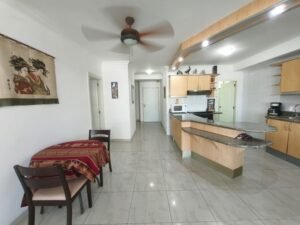 Inside, the 125 m² (1,345.48 sq ft) layout feels open and comfortable, with 3 bedrooms and 2 full bathrooms—ideal for hosting visiting family or creating a flexible live-and-rent setup. The living, dining, and kitchen areas flow together naturally, filled with light and cooled by ocean breezes. Step out onto your private balcony to enjoy partial ocean views and the coastal atmosphere.